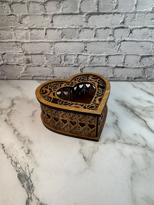 Wooden Candy Box with Hearts | Gift Box for Chocolates